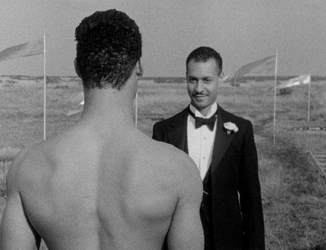 While Baldwin spoke his wisdom and answered questions about Afro-Caribbean futures in the West, the camera panned to the crowd. Black faces overwhelmed the frame, a few even becoming spotlights of character. A man hit his cigarette coolly every time the camera landed on him, returning at least four or five times over to his suave demeanor. A woman sits in sophistication, a bandana hanging over a smooth bang; she seems to be one of the few Black women in the audience for rows and rows.