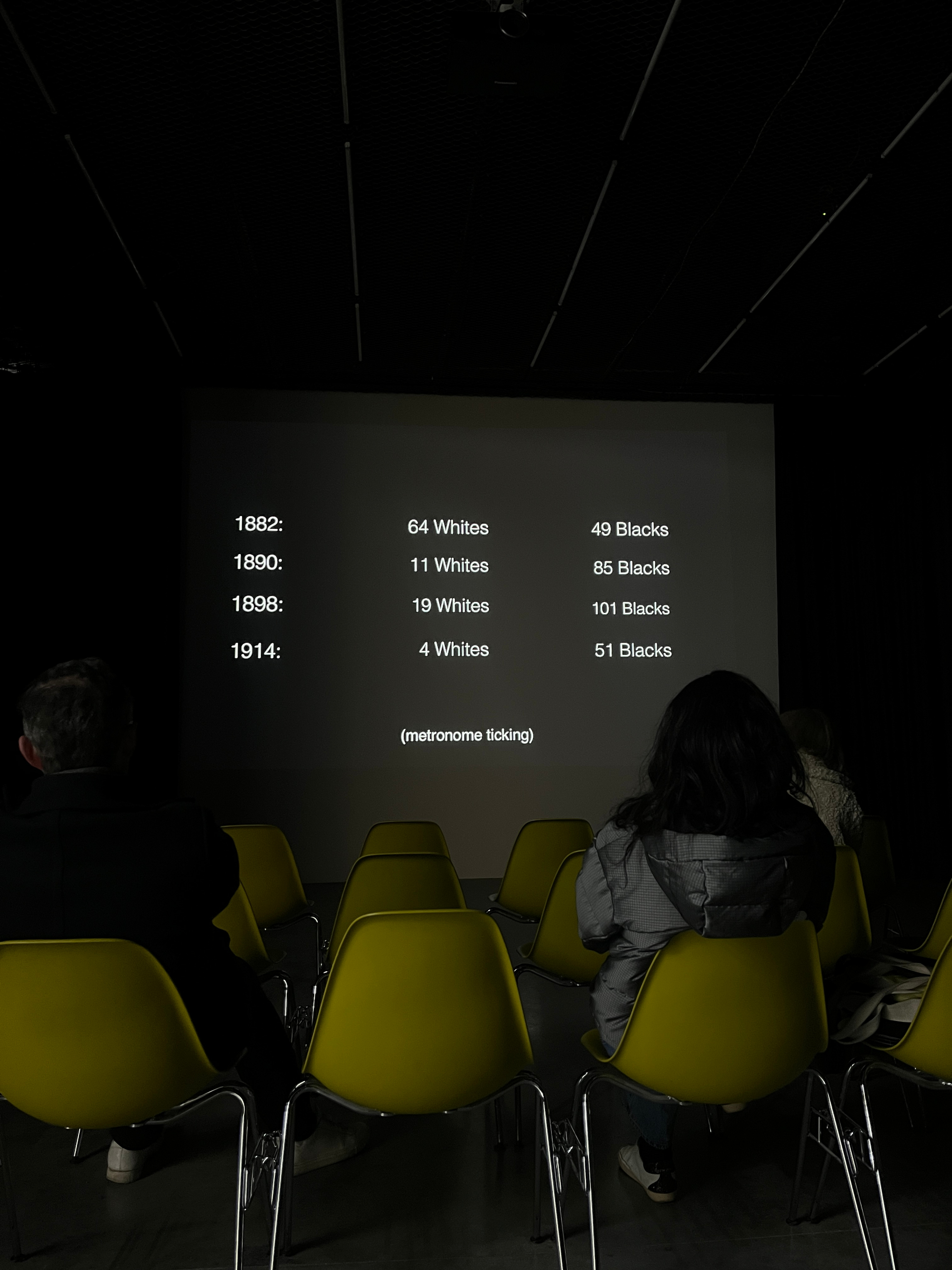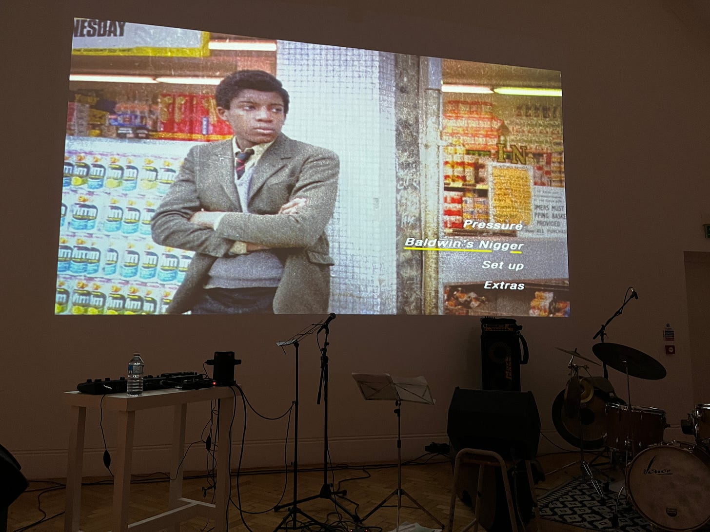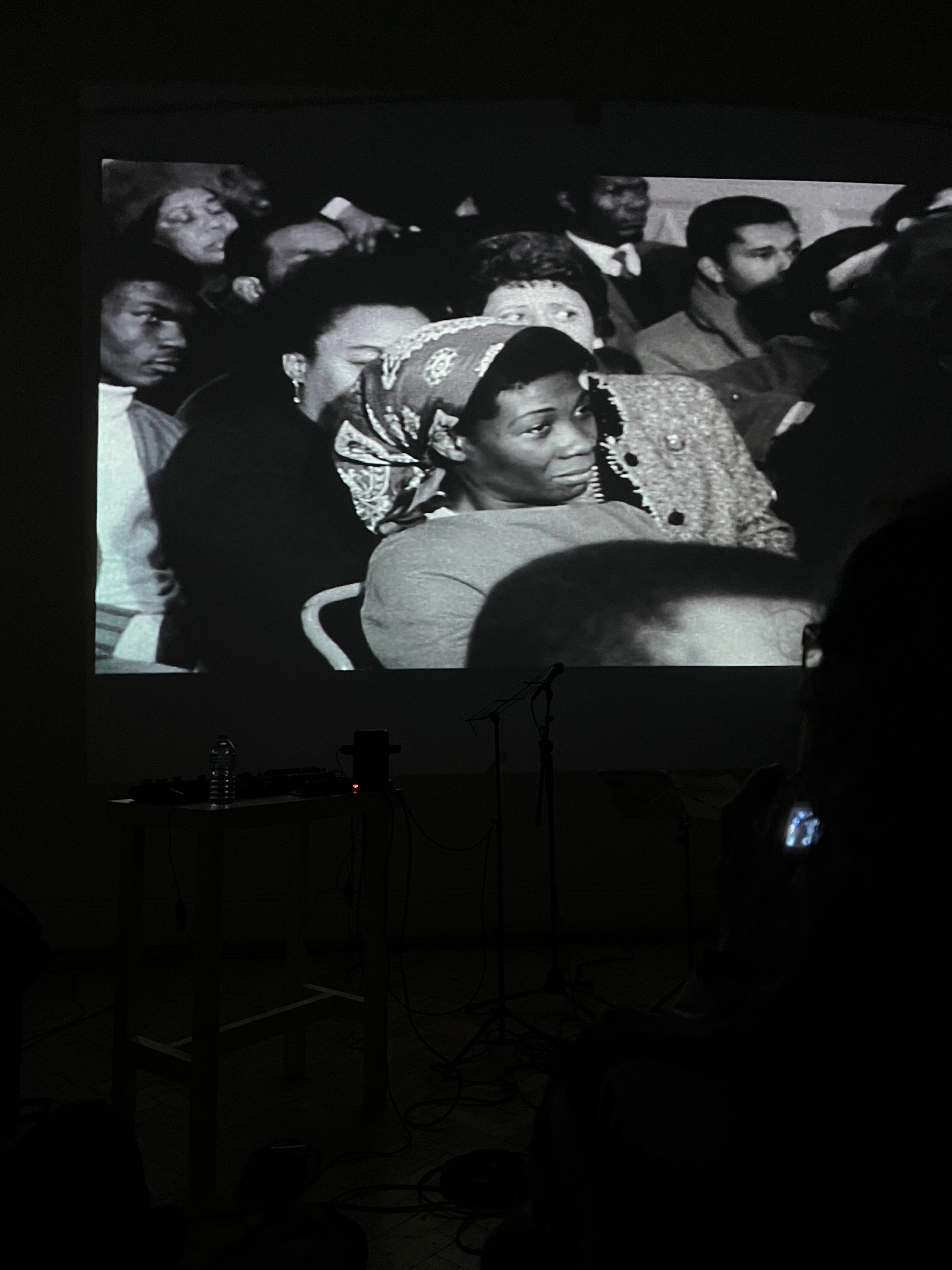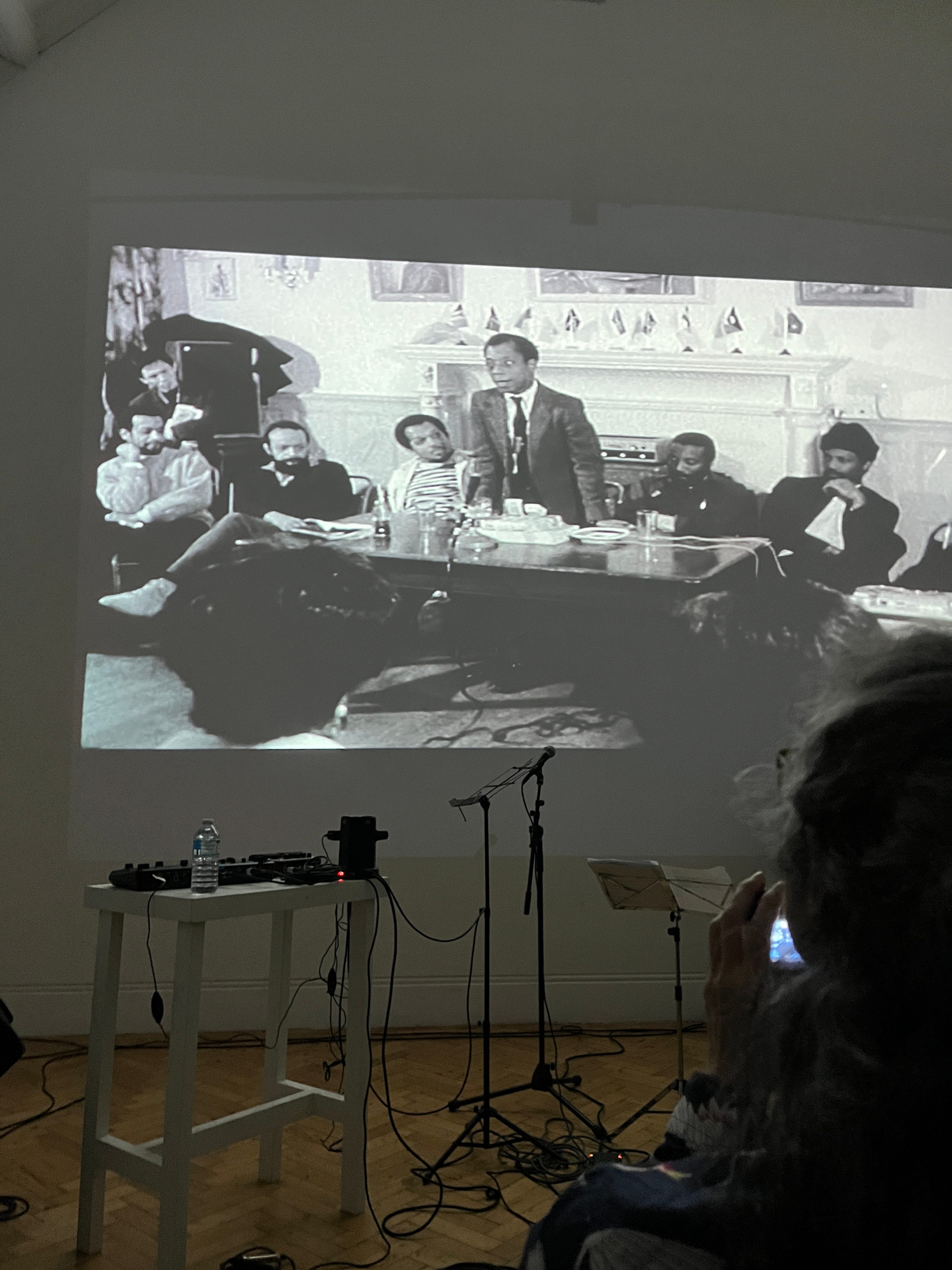 Toward the end of Novemer, the Camden Art Centre held a screening of the film Baldwin’s N*gger (1969) (a documentary by Black British filmmaker Horace Ové which captures a conversation between James Baldwin and Dick Gregory at London’s West Indian Students’ Centre) and a public listening session of an experimental jazz piece by Neil Charles, Mark Sander, and Cleveland Watkiss inspired by Baldwin’s short essay collection Dark Days.