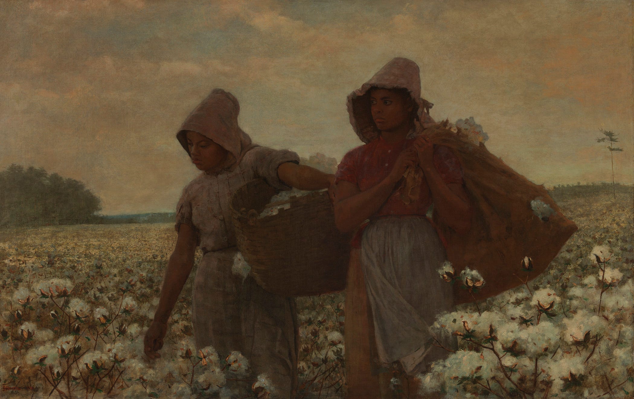 When teaching this painting in an art history class, a professor of mine explained that when Homer (or another of his contemporaries) was questioned about their impetus to primarily paint African American subjects, and specifically in The Cotton Pickers, African American women, the exchange went something like this: