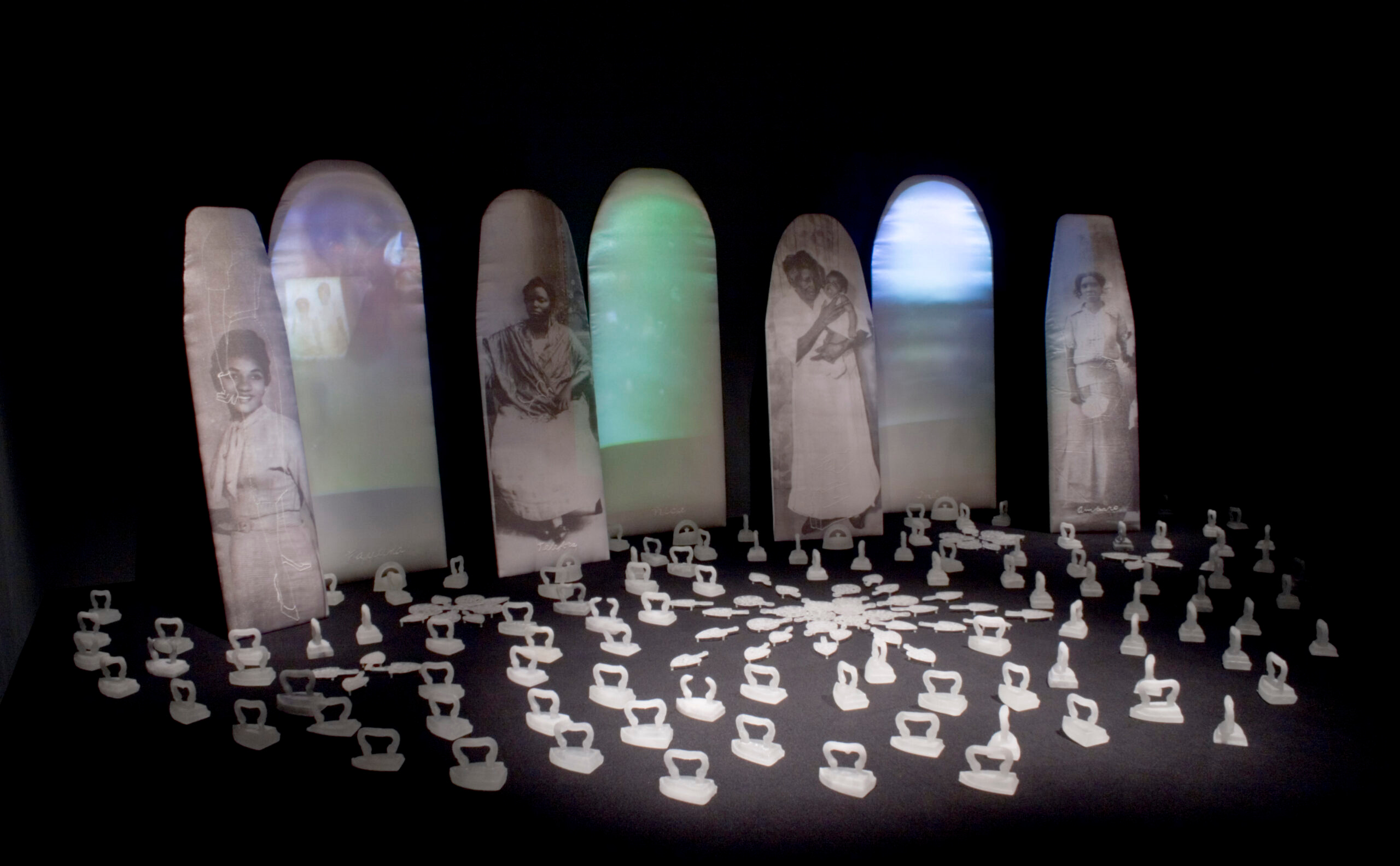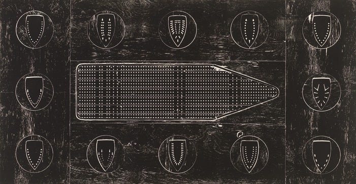 As the iron and ironing board evoke slave ships with their flattened image, with my mother and me in mind, they also evoke Black women’s domestic labor. Their relatedness is no coincidence.